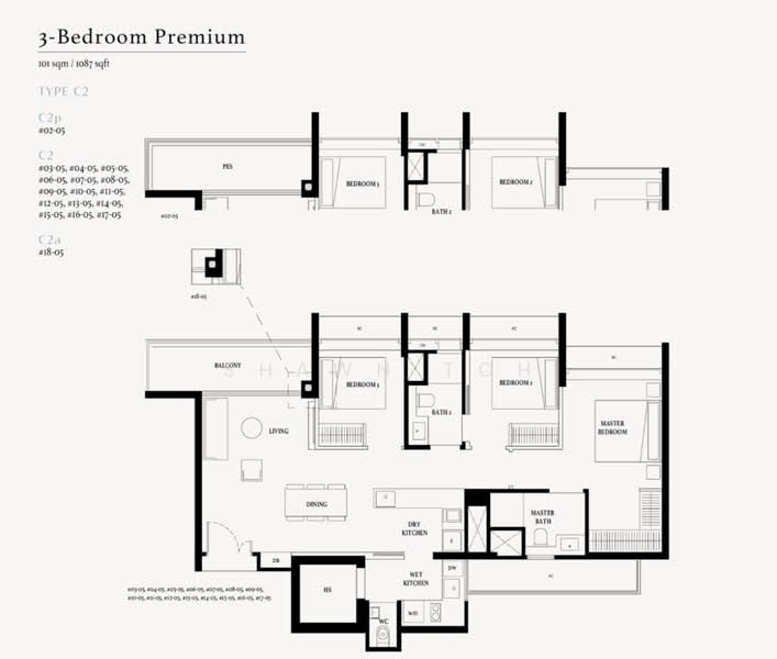 Floor size of this unit at Freehold 3B3B near Katong Park MRT! Freehold! is 1,087 sqft.