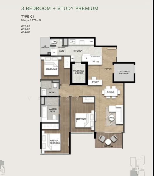 Floor size of this unit at Freehold apartment @ Joo Chiat is 1,227 sqft.
