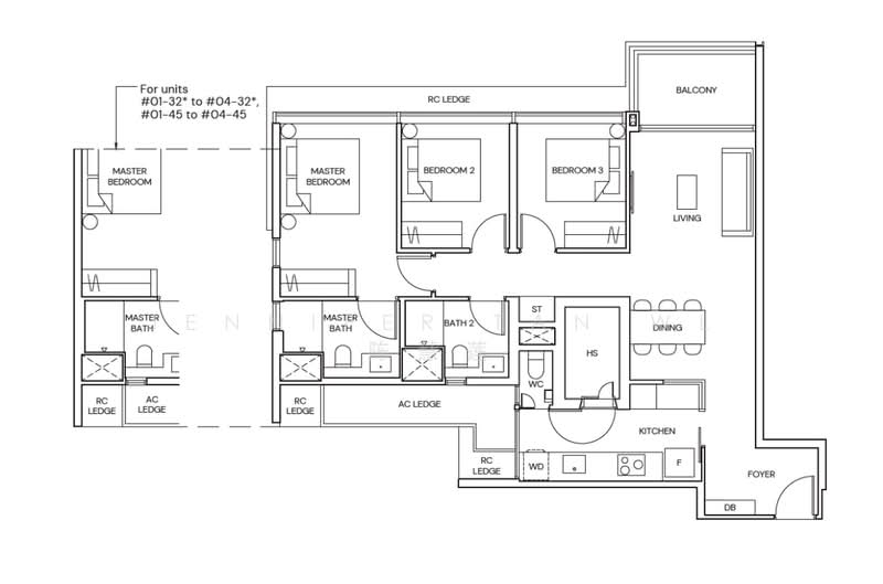 - 3BR – 904 to 1098 sqft (108 units)