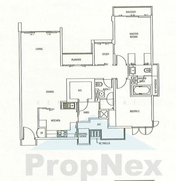 - 2Bedroom + Study Room + 2 Wash room Layout