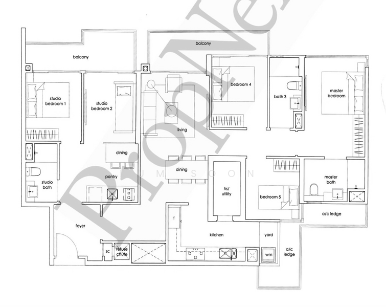 - 3 bedrooms + 2 bedrooms dual key