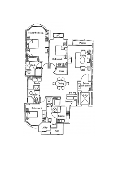3 Bed 3 Bath Plus Study with private lift