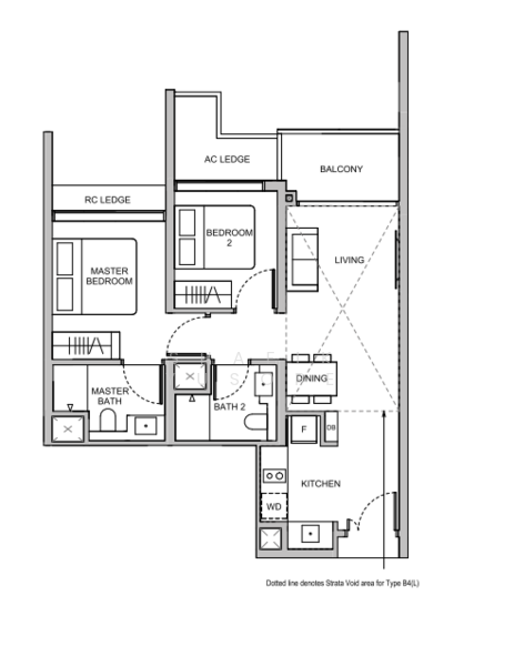 - 2-Bedroom (Type B4) Size: 66 sqm/ 710 sqft
