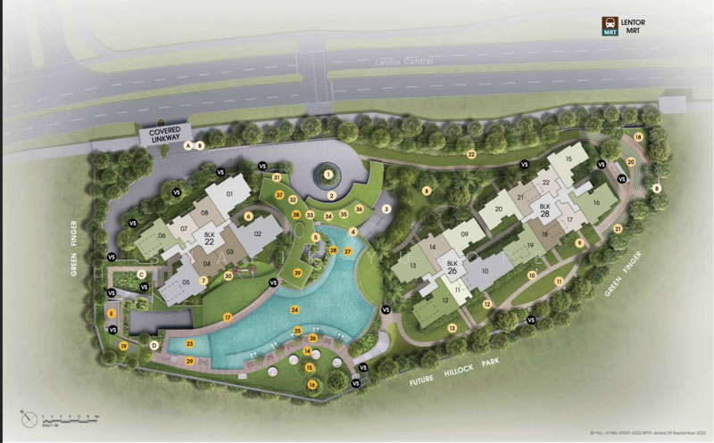 Hillock Green is a newly launched 99-year leasehold condominium located at 22 Lentor Central in District 26 (D26). Hillock Green is the newest addition to the enclave. It is located in the Lentor Hills Estate, a neighbourhood predominantly comprised of landed homes and private condominiums. While enjoying the exclusivity of residing in a private estate, residents can also unwind in the lush greenery and tranquil landscapes offered by the surrounding Hillock Park and Linear Park. Hillock Green is also an eight-minute walk from Lentor MRT station (TE5) on the Thomson East-Coast Line (TEL), so residents can travel to the Orchard shopping belt, Marina Bay, and the Woodlands Regional Centre with one direct train ride. In addition to being within walking distance of the upcoming Lentor Modern Mall, residents also get convenient access to affordable amenities such as wet markets and hawker centres nearby. Families with children will also benefit from choice schools within close proximity to the vicinity. One of the strong selling points would be its close proximity to the Lentor MRT station (TE8) on the TEL. The TEL gives commuters access to the Circle Line via Caldecott (CC17/TE9), the North-South Line via Orchard MRT station (NS22/TE14), the Downtown Line (DRL) via Stevens MRT station (DT10/TE11), and the North-East Line (NEL) via Outram Park MRT station (NE3/EW16/TE17). This significantly reduces residents' travelling time to the Orchard shopping belt and the Central Business District (CBD). For drivers, the condo is well connected to main arterial roads and expressways such as the Central Expressway (CTE) and Seletar Expressway (SLE). Upon completion in 2027, the North-South Corridor (NSC) will also unlock a wider range of public transport services to the North, South, and East of Singapore and the Central Business District (CBD). The dedicated bus lanes, cycling trunk routes, and pedestrian paths along the 21.5km corridor are estimated to reduce travelling time by up to 15 minutes. 50m Lap Pool Clubhouse Gym Tennis Court Playground Sky Garden Anderson Primary School CHIJ St. Nicholas Girls’ School Mayflower Primary and Secondary School Presbyterian High School Ang Mo Kio Primary and Secondary School Peirce Secondary School Yio Chu Kang Secondary School Hillock Green is near preschools for families with young children, such as My Canopy Montessori, MapleBear Preschool, and MAGIC. Other choice schools, such as Raffles Institution and Catholic High School, are nearby. Tertiary educational institutions nearby include Anderson Serangoon Junior College and Nanyang Polytechnic. Nearby healthcare facilities include: SATA CommHealth Ang Mo Kio Medical Centre Ang Mo Kio Polyclinic Ang Mo Kio-Thye Hua Kwan Hospital Healthcare AMK Medical Clinic St Luke’s ElderCare Ang Mo Kio Residence CareDoc Medical Clinic Raffles Medical Ang Mo Kio Life Family Clinic (Ang Mo Kio) Residents enjoy convenient access to various shopping and dining options without travelling far away from home. Across the road, residents can access supermarkets and speciality services such as childcare centres at Lentor Modern, an integrated mixed-use development with retail and dining options. Those open to venturing out of Lentor can take a short drive to nearby heartland malls such as Ang Mo Kio Hub, Jubilee Square, Djitsun Mall, Thomson Plaza, Junction 8, and Northpoint City. Residents who enjoy affordable local food will also be spoilt for choice. Several food centres and markets are nearby, such as the 628 Ang Mo Kio Market & Food Centre, Mayflower Market & Food Centre, and Sembawang Hills Food Centre. For those who love late-night supper runs, popular supper hangout spots in Tagore, Springleaf, and Upper Thomson are also a short drive away. For nature and outdoor enthusiasts, various recreational venues and nature reserves, such as the Yio Chu Kang Stadium & Sports Complex, Lower Peirce Reservoir and Park, Thomson Nature Park, and Bishan-Ang Mo Kio Park, are nearby. Hillock Green is a joint venture by Lentor Central Developments Pte Ltd comprising Forsea Residence Pte. Ltd, Soilbuild Group Holdings Ltd, and United Engineers Ltd. Forsea Residence Pte. Ltd. focuses on real estate development, building and infrastructure construction, and M&E services. Forsea is backed by its parent company, China Communications Construction Company Ltd, a globally integrated infrastructure service provider with a business presence in over 145 countries. Soilbuild Group Holdings Ltd is a leading integrated property group with an established track record. With over 46 years of industry experience, Soilbuild spearheaded residential properties ranging from luxury condominiums to conservation houses. Notable projects include Verticus, which received high commendation for Best Boutique Condo Architectural Design and recognition in Sustainable Construction at the PropertyGuru Asia Property Awards 2020. Founded in 1912, United Engineers Ltd. is one of the pioneer companies that played a crucial role in Singapore’s infrastructure and economic developments. Key projects under their belt include Orchard Gateway, The Rochester, Rochester Mall, and Park Avenue Rochester. Hillock Green has been available for viewing since November 2023. Potential buyers can contact the official development team or listed agents to book a show flat viewing and learn more about floor plans. Sitting on a plot size of 434,144 sq ft, the condo comprises three exclusive 23-storey tower blocks housing 474 units in 1 - to 4-bedroom configurations. Thoughtfully designed for luxurious living without compromising the environment, the development sports eco-friendly features such as rainwater harvesting systems and solar panels to reduce carbon footprints. All units also have open-concept layouts to maximise natural light flow and promote healthy home ventilation. The Urban Redevelopment Authority (URA) Master Plan 2019 seeks to rejuvenate well-established neighbourhoods like Ang Mo K