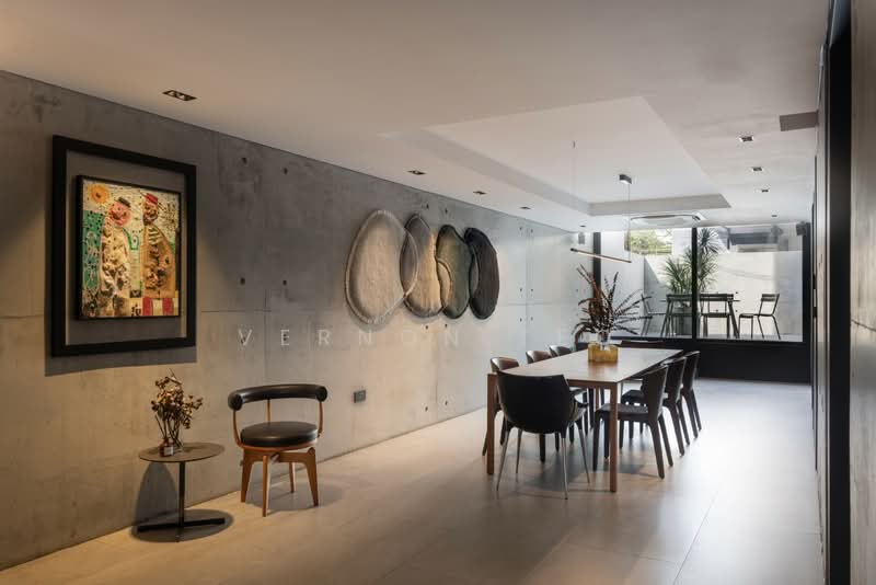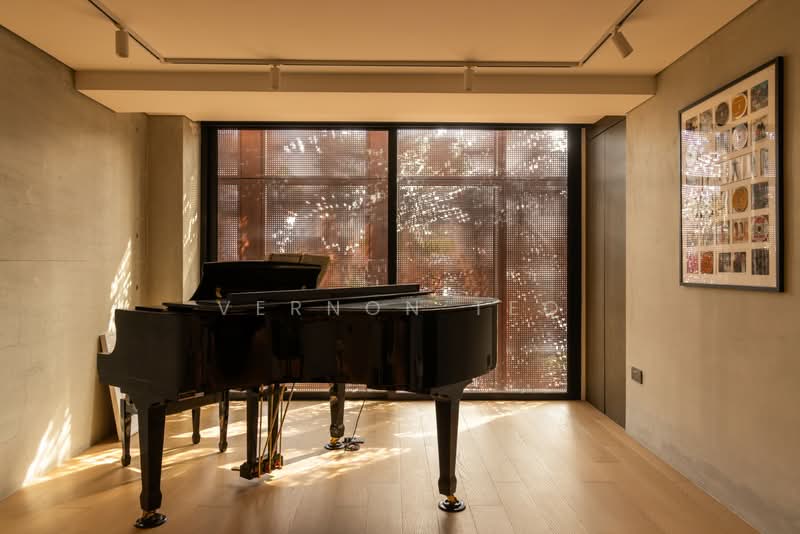 An extraordinary expression of contemporary brutalism, this 5-bedroom residence with study and helper’s room blends architectural confidence with rare warmth. Built from concrete and steel, its monolithic form is softened by a corten steel façade with laser-cut detailing inspired by surrounding foliage.