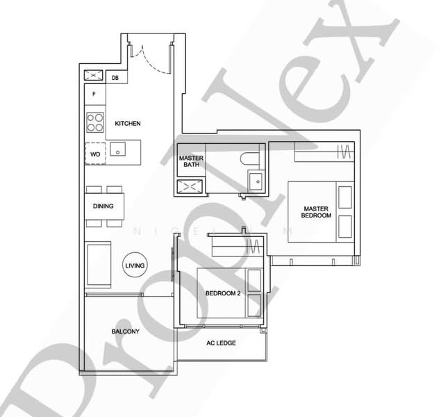 * Very efficient 2 bedroom layout L shape