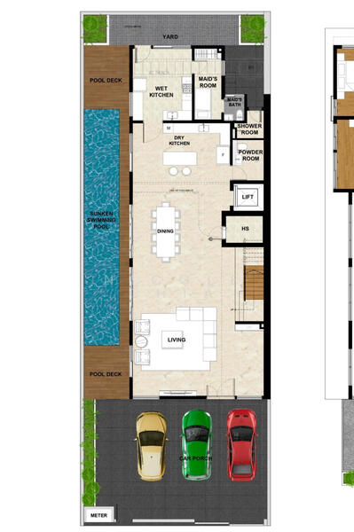 - spacious living and dining hall with high ceiling