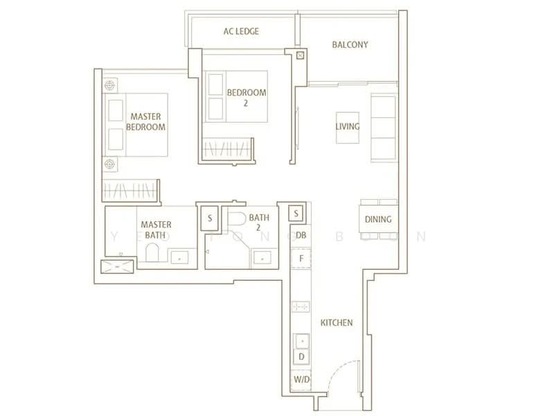 2 bed 2 bath (764 sqft)