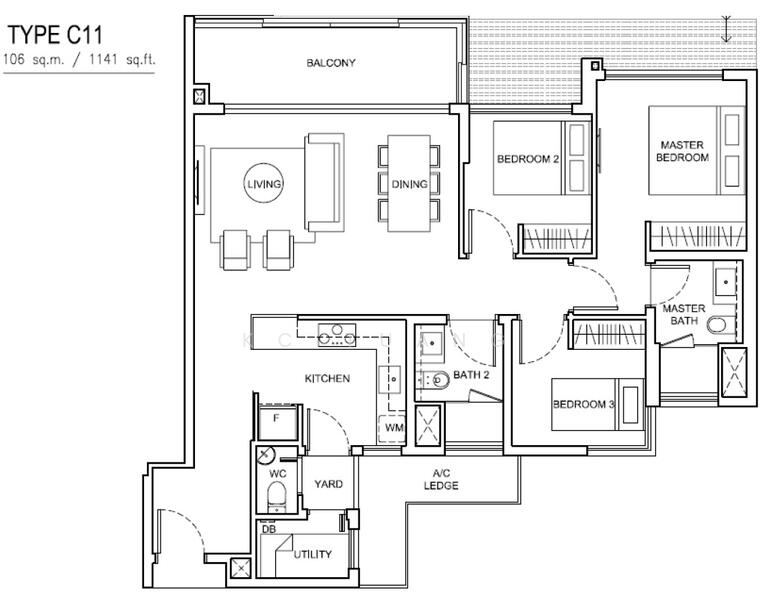 3-bedroom + 3 bathrooms + Utility + Yard (Note: Removed toilet bowl at WC to convert space into a laundry area; able to re-install at Buyer’s request)