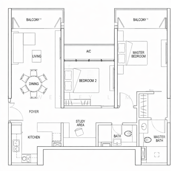 +Dual balconies in living and master bedroom