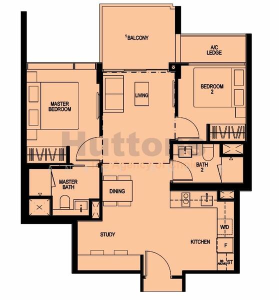 Bigger 2-bedder layout with high ceiling feature