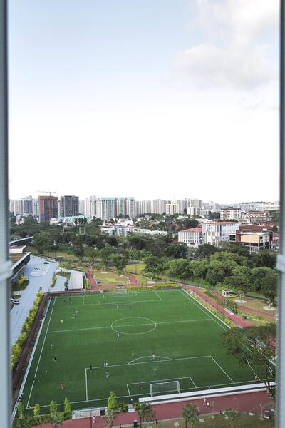 Open views overlooking a newly built football court and NS Hub