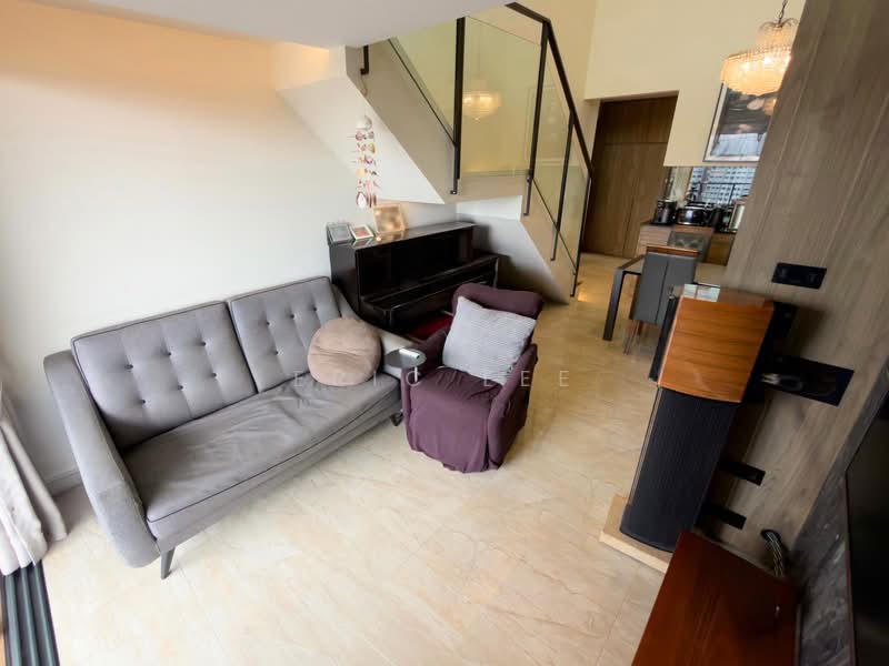 Rare 3-bedroom penthouse with soaring 6.3m high ceiling and elegant chandelier lighting.