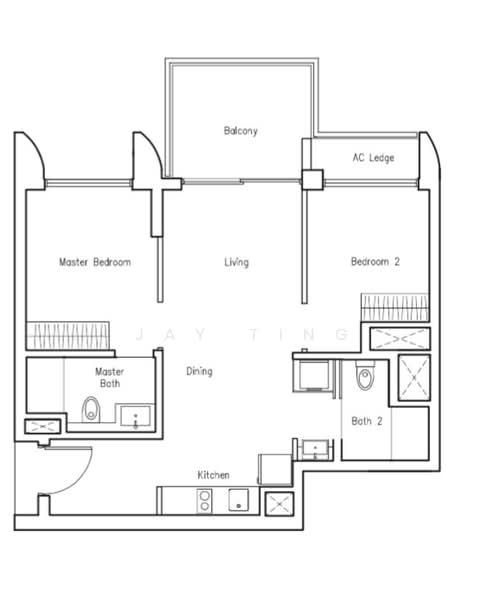 - 2 Bedroom (master + common) + 2 Bath with balcony