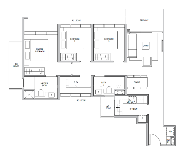 ● Efficient 3+ Flexi Bedroom unit of 980 sqft layout – bright, breezy & well-ventilated.