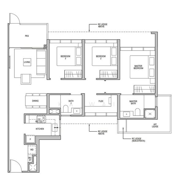 - 3 Bedroom + Flexi | 990 sqft | 2 Baths