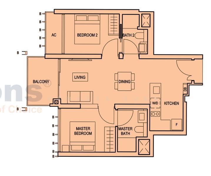 Rare 2-Bedder dump bell shape with unblocked greenery view