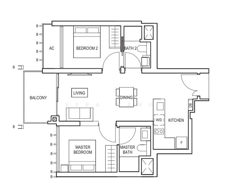 - Dumbbell layout — bedrooms on opposite ends for maximum privacy and space efficiency