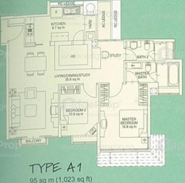 Good size 2 Bedder & Study 1023 sqf for Sale