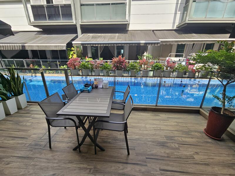 ✅ Relaxed pool view from balcony — peaceful, resort-like ambience