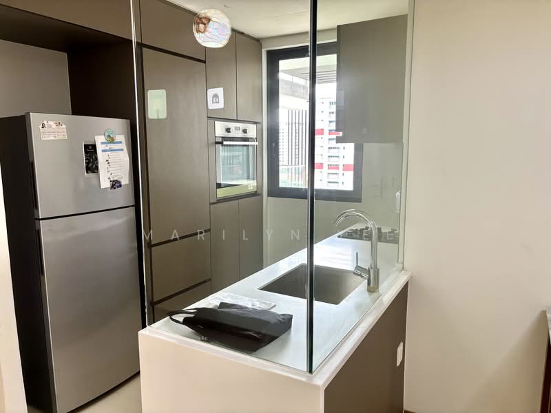 + This high floor unit of 904 sqft comes with a North-South facing, bright and airy. There are 2 bedrooms, 2 bathrooms, 2 balconies with zip track blinds, bomb shelter, enclosed kitchen, living and dining