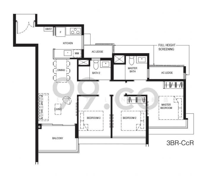 - This 969 sqft unit offers ample space for comfortable living and is