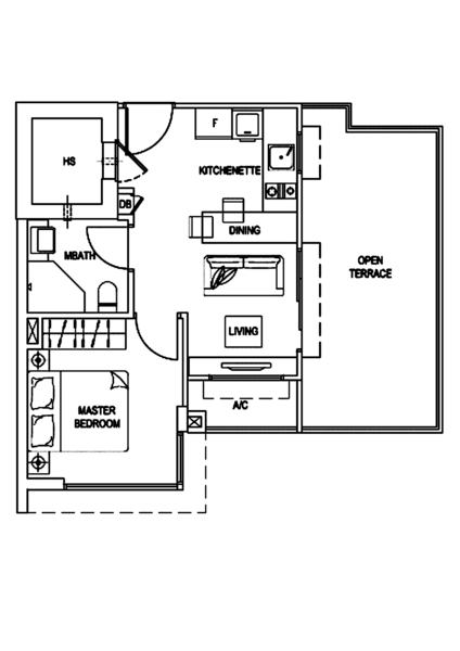 • Efficient and practical 1-bedroom layout