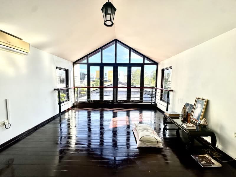Apart from the huge living and dining halls on the first floor and grand double volume, this house has 2 bedrooms (one mega size, en-suite bedroom and a second with walk in wardrobe), 2 bathrooms, a huge indoor kitchen, wet kitchen, helper room and yard toilet. Second floor has 3 good size bedrooms (1 en-suite) and 2 bathrooms. A lovely attic overlooking the estate functions as a family or quiet room.