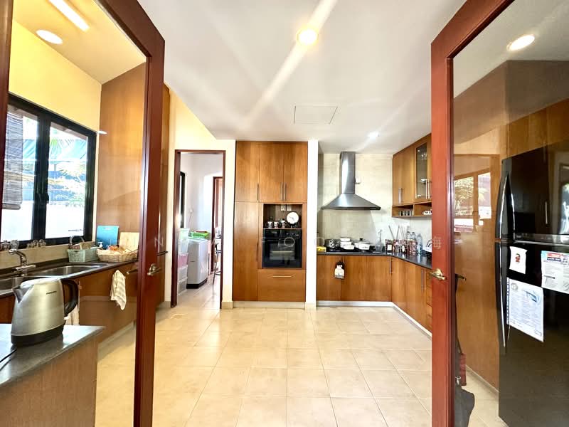 Designed by a Greek architect, this grand beauty sits on a land size of 6,156sqft, built up of 3,270sqft and is situated in a rare 3 storey bungalow zone. Its elegance is enhanced by stained Peranakan glass at the entrance and a double volume ceiling on the first floor guest areas. First floor has mainly large doors which open up to allow natural light and breeze to permeate through the home. Layout is also generously designed for quality living as opposed to maximising build. This lovely home also uses good quality teak wood tastefully. Immaculate condition, well maintained by the house proud owner. As an example, cooking was never done in the large indoor kitchen.