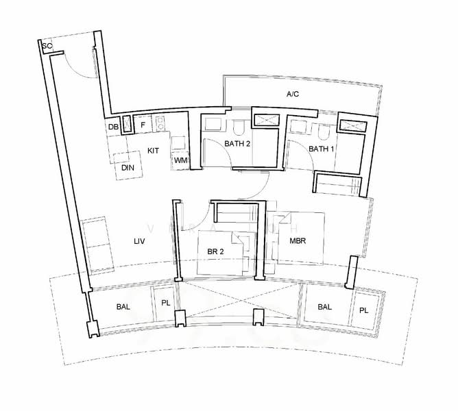 - Good Size bedroom, bathroom, kitchen, living room and balcony