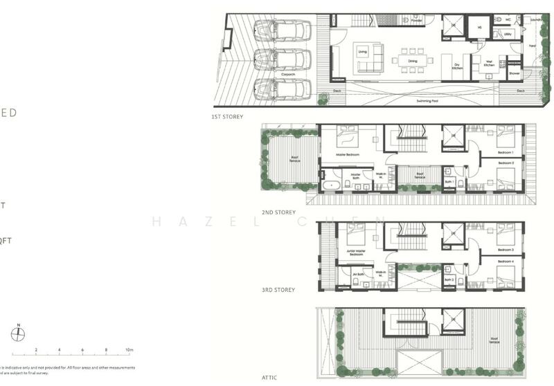 3rd Storey: Junior Master with ensuite bathroom & balcony, Bedroom 3 & 4 with shared bath