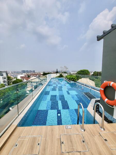 Timeless Design, Elevated Views - a striking facade blends timeless elegance with contemporary flair. Head up to the rooftop aqua deck for sweeping vistas over the prestigious landed enclave of Kovan – your private escape with a panoramic perspective.
