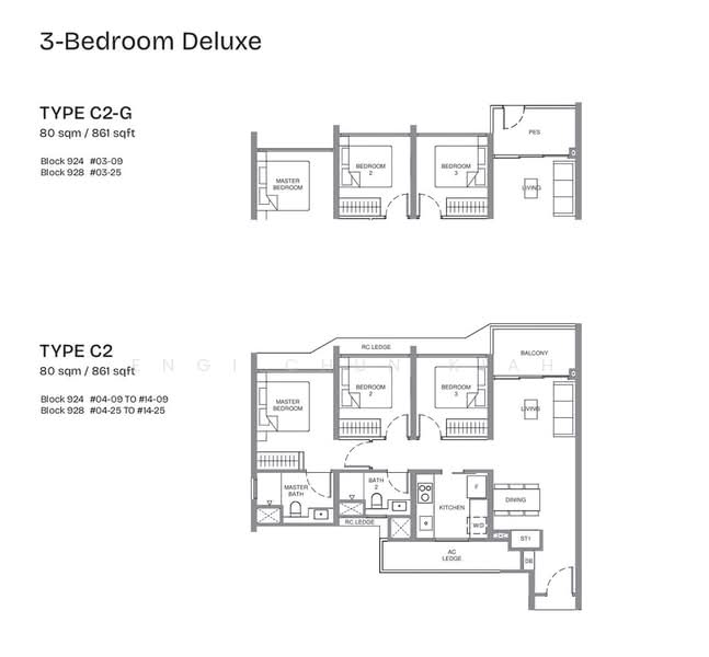 Floor size of this unit at Pinery Residences is 861 sqft.