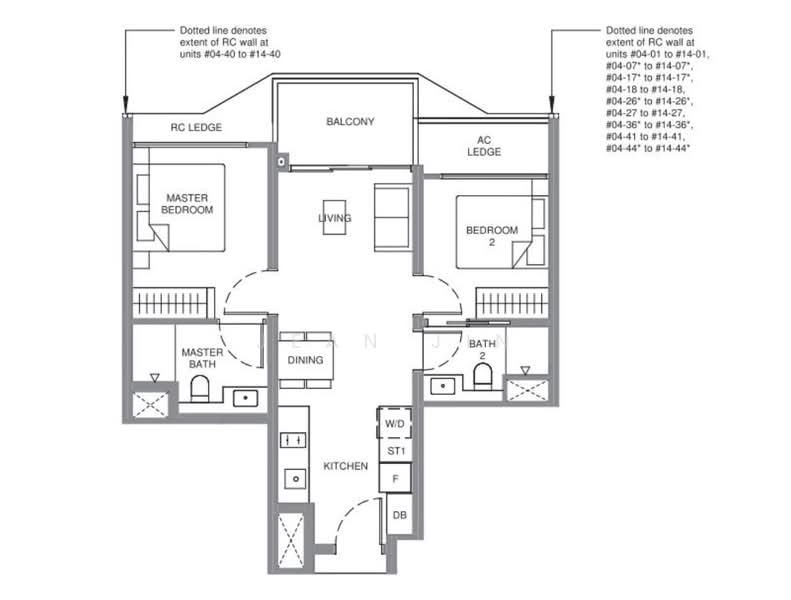 - 2 Bedroom: 624-667 sqft (58-62 sqm)