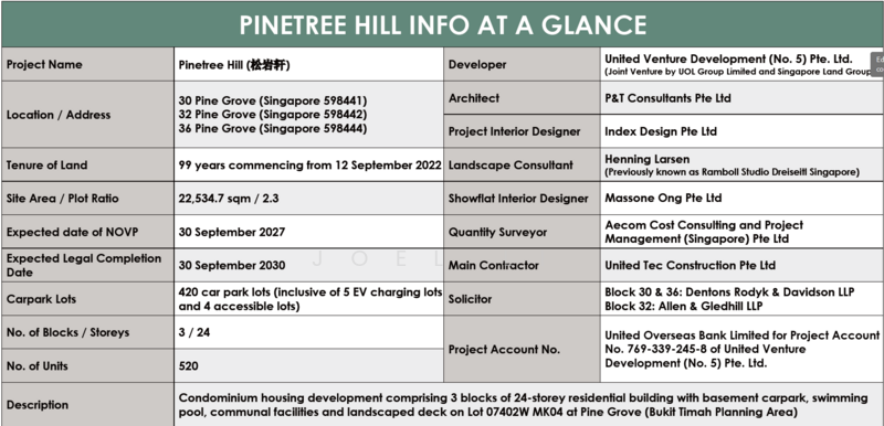 Pinetree Hill is a newly launched 99-year leasehold condominium located in Ulu Pandan in District 21 (D21). Taking over the site of the former Nexus International School alongside Pine Grove Condo, Pinetree Hill is the first new private residential project launched in the area since 2009.Pinetree Hill is located close to Clementi; a mature estate popular among families with children given the various reputable schools and educational institutions in the area. In addition to serving future residents with a comprehensive view of Clementi Forest amidst the serenity of lush greenery, Pinetree Hill is also within close proximity to Sunset Way. Known for their eateries and cafes in the area, the residents can check out the various eateries and cafes in the area for a quick meal fix. For nature lovers, Pinetree Hill is within walking distance from the Clementi Nature Trail. The trail runs along the Ulu Pandan Park Connector and takes parkgoers all the way to the rail corridor.The nearest MRT station to Pinetree Hill at present is Dover MRT station (EW22) on the East-West Line (EWL), which is an approximate 15-minutes’ walk away. With one direct train line, Pinetree Hill residents can head to the Central Business District (CBD) at Raffles Place and Changi Airport in one direction and Jurong in the other. Those who prefer more accessible modes of public transportation can explore the highly connected bus services in the area that can take the residents to Clementi Central and Bukit Batok. Phase 2 of the Cross-Island Line (CRL) is slated for completion in 2032. When ready, the residents will be able to enjoy enhanced accessibility with Maju MRT station nearby. For those who drive, Pinetree Hill is within close proximity to the Pan-Island Expressway (PIE) so residents can get to Singapore’s city centre and the CBD in under 30 minutes. Residents can also take a 10-minutes’ drive to nearby malls such as Clementi Mall, Grantral Mall @ Clementi, and Clementi Avenue 2 Market and Food Centre for grocery runs.Pinetree Nest50m Lap PoolPool DeckAerobic PoolSpa PoolHalf Basketball CourtTennis CourtKaraoke RoomGymFunction RoomBBQ PavilionCyathea GardenMaranta GardenHeliconia GardenPine Grove PondChildren’s PlaygroundResidents are spoilt for choice when it comes to retail options. There are several well-established shopping malls around the area. In under a seven-minutes’ drive, residents can head to the five-storey Clementi mall and explore their wide selection of F&B, retail, entertainment, and service options. For those who need a quiet corner to catch up with reading, the Clementi Public Library is also located within the mall. Other malls near Pinetree Hill include Clementi Avenue 2 Shopping Centre, the Star Vista, West Coast Plaza, and Viva Vista Shopping Mall which are all within a 10-minutes’ drive away. For local hawker fare, Pinetree Hill residents can pick from up to five hawker centres nearby including the Clementi 448 Market & Food Centre beside Clementi Mall. For recreational and leisure activities, the residents can head to Clementi Woods Park, Clementi Sports Hall, and Clementi Swimming Complex to clock in some exercise.Henry Park Primary (within 1km radius)Pei Tong Primary (within 1km radius)Anglo-Chinese School (Independent)Clementi Primary (within 2km radius)Nan Hua Primary School (within 2km radius)Methodist Girls’ School (Primary) (within 2km radius)Nan Hua High SchoolNUS High School of Mathematics and ScienceTertiary educational institutions near the area include School of Science and Technology, Singapore Polytechnic, and the National University of Singapore.Nearby healthcare facilities include:Gleneagles HospitalTeo Clinic & SurgerySwiss ClinicInternational Medical ClinicUnited Venture Development, an 80-20 joint venture between UOL Group and Singapore Land Group is a real estate development and investment entity listed on the main board of Singapore Exchange since 2007. United Venture Development holds an established track record in developing properties ranging from landed estates to apartments as well as commercial and industrial projects. Notable projects under their belt include AMO Residence, Amber 45, Avenue South Residence, Botanique At Bartley, Clavon, and The Watergardens.Pinetree Hill has already been launched for viewing and sale since July 2023. To book a showflat viewing and learn more about Pinetree Hill and floor plans, potential buyers can contact Pinetree Hill's official development team or listed agents.Sitting on a plot size of 22,535 sqm, Pinetree Hill comprises three 24-storey blocks housing approximately 520 residential units. As the entire Pinetree Hill site sits on an elevated plane, all units on lower floors get enhanced privacy compared to other developments on level grounds. As an added bonus, the development is north-south facing so all units are spared from direct sunlight any time of the year. Residential blocks are intentionally staggered to maximise space between the tower blocks. This enhances airflow across all units while also allowing residents to truly enjoy unblocked views of Clementi Forest, Bukit Timah Nature Reserve, and the Dover neighbourhood. For homeowners who prioritise having ample space, Pinetree Hill is a project to be considered given the larger percentage of land space set aside for residential blocks as opposed to newer developments in the area. 88% of Pinetree Hill‘s site is set aside for landscaping while the other 12% is assigned to residential blocks. This translates to approximately 466.5 sq ft of space per unit –– arguably generous for new residential launches.Under URA’s master plan, the Ulu Pandan neighbourhood is set to undergo some transformations. These ongoing and upcoming enhancements will not only boost the livability of the area in time to come but also benefit residents. Within walking distance of Pinetree Hill, a nature park will be built in the western part of the Ulu Pandan estate. Under the Ac