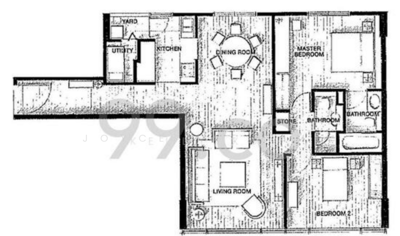 Floor size of this unit at Prime Orchard Location - 2 bedder Unit for Sale is 990 sqft.