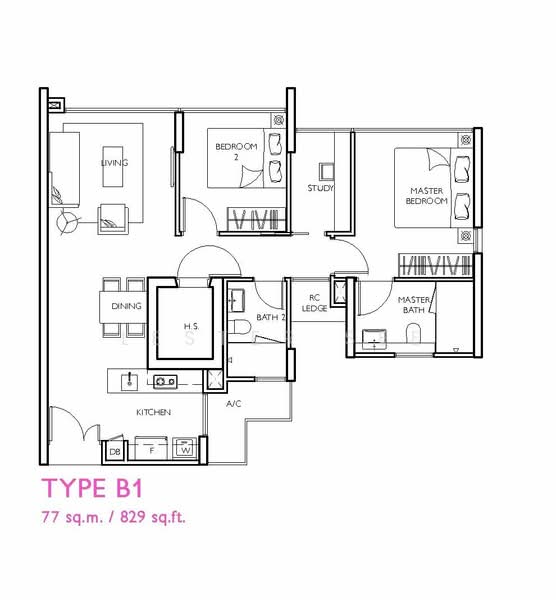 ► Rare Layout - Study has windows with natural ventilation, can be functionally converted to store or helper's room.