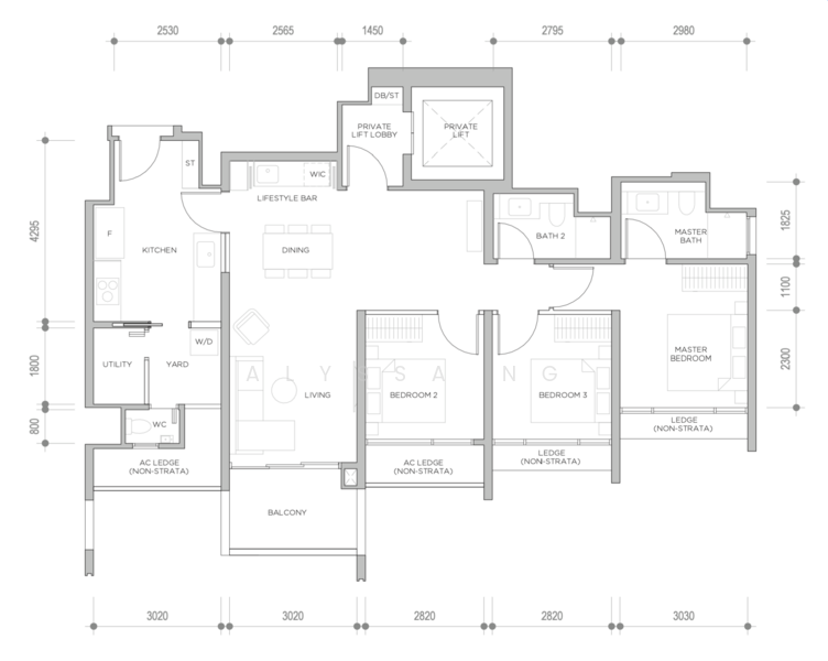 3BR Premium w Pvt Lift – 1163 to 1195 sqft (38 Units)