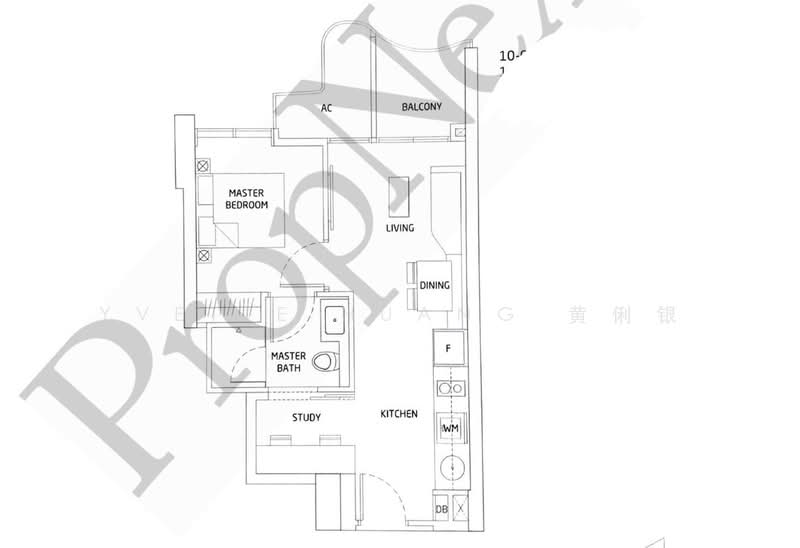 * 1 bedroom + study, approx. 495 sqft with balcony