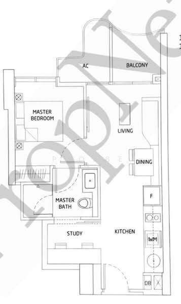 - 1 plus Study 495sqft with balcony