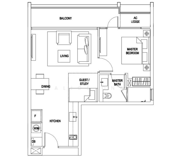 + Living Area + 1 Bedroom + 1 Bathroom + Balcony