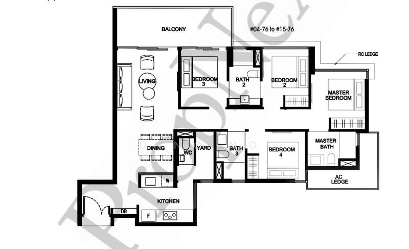 Floor size of this unit at Rare waterfront view 4-bedder with all en-suites is 1,216 sqft.
