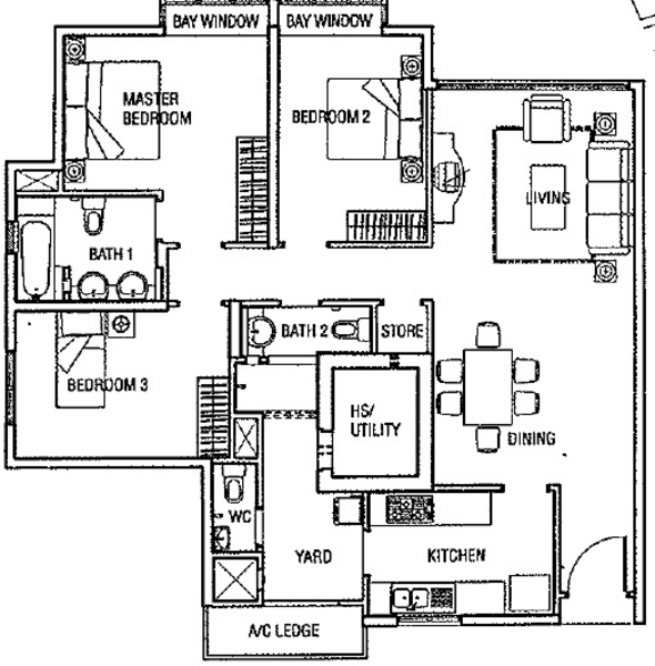 - Spacious and squarish layout with good size bedroom