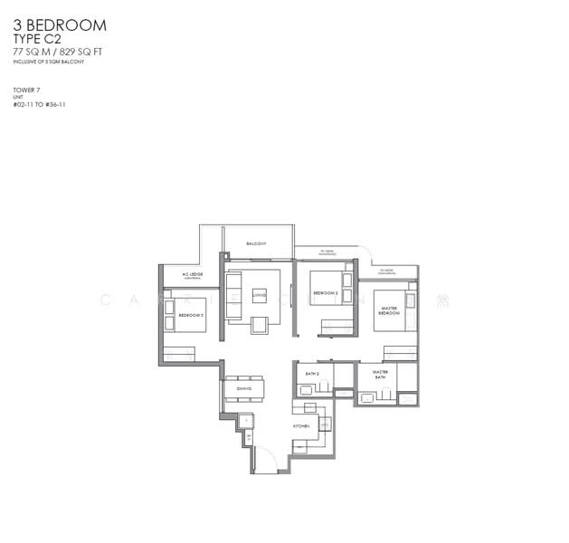 Floor size of this unit at River Modern is 829 sqft.