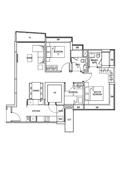 - FUNCTIONAL 3 BEDROOM WITH A SIZE OF 947 SQFT!