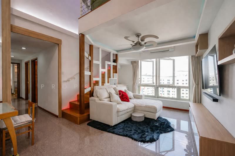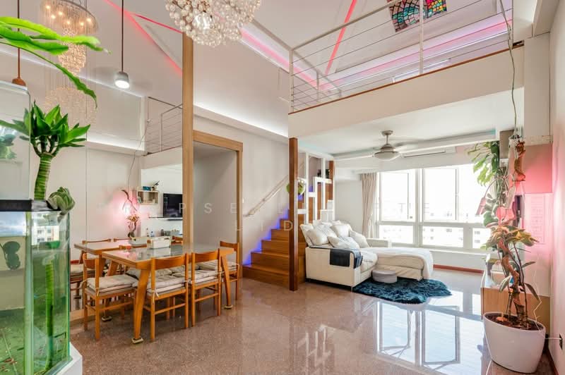 Welcome to this exceptional corner penthouse at Rivervale Crest, a true one-of-a-kind home featuring the highest ceiling height of approximately 7 metres. This is the only penthouse unit that has fully maximised its loft potential, thoughtfully enhanced with a custom-built furniture deck approved by MCST and PE. Crafted using lightweight materials and supported by eight solid Indonesian wood beams, the loft adds versatile space without compromising safety or aesthetics. Spanning a generous 1,668 sqft, all four bedrooms comfortably fit double beds, making this well-renovated home ideal for families seeking space, privacy, and architectural character.