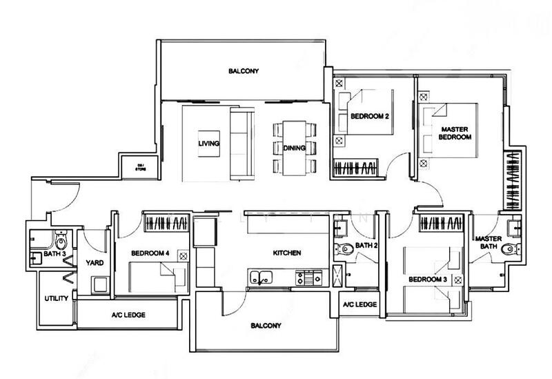 ⧫ 四间卧室、三间浴室,附储藏室、生活阳台与工人房