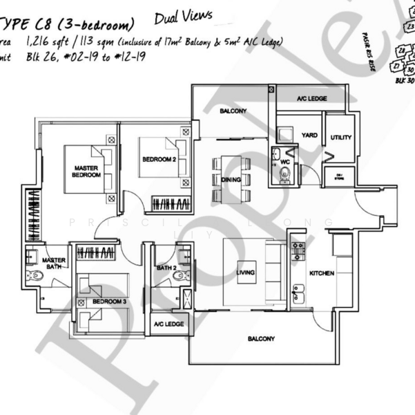 - All 3 bedrooms well-sized, master with sea view & built-in wardrobe