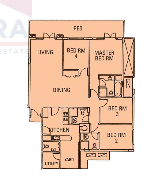 total 4 bedroom, 3 bathrooms, 1 yard toilet, living room, kitchen yard + utility room