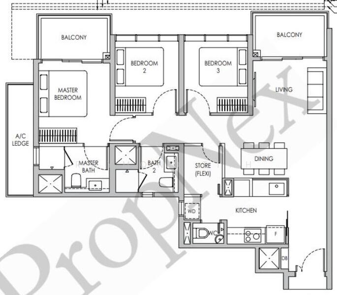 • 3 Bedrooms + Store (flexi space for home office / helper’s room)